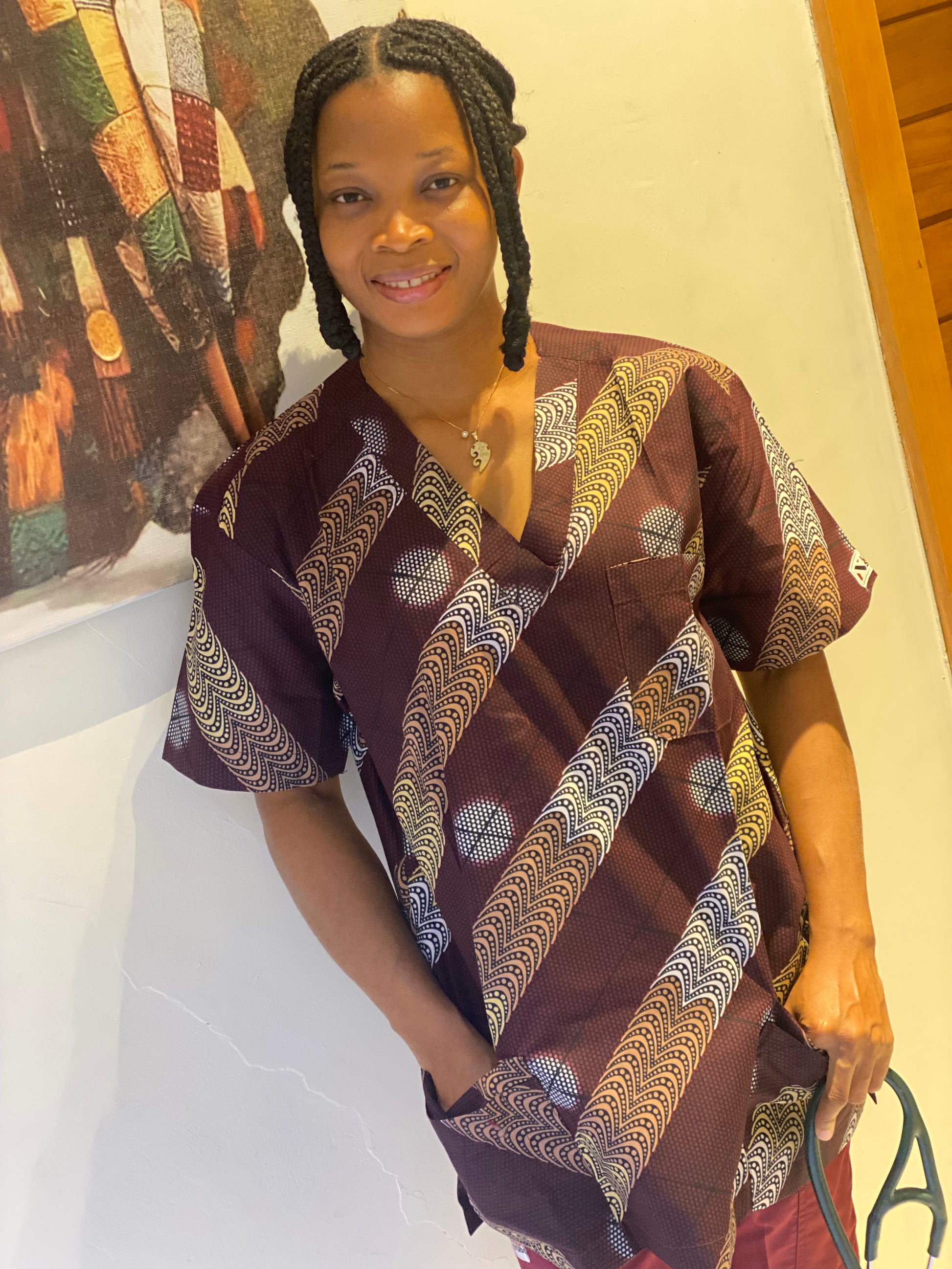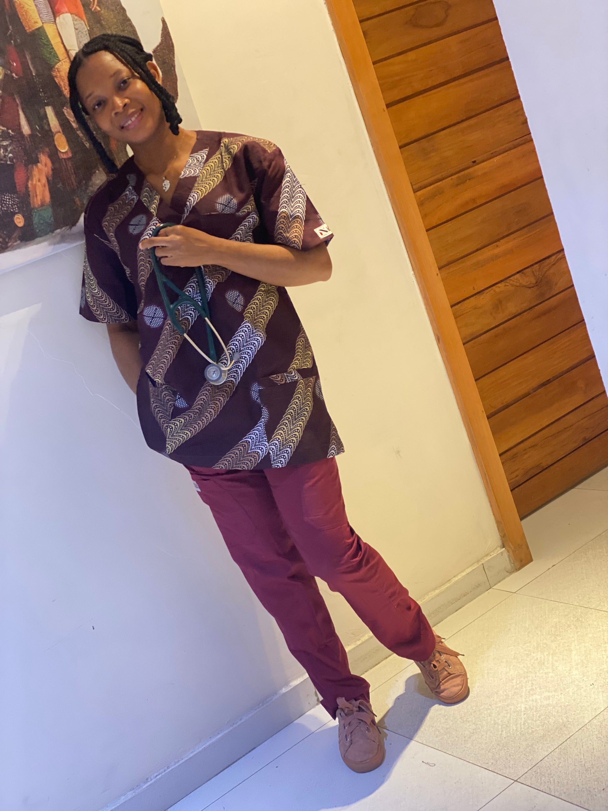 At Unique Clothing Line, we redefine medical scrubs with the vibrant touch of Ankara prints. Our Ankara scrubs blend functionality with fashion, allowing healthcare professionals to express their unique style while maintaining a professional look. These scrubs are thoughtfully designed for comfort, durability, and a splash of cultural elegance, making long shifts more lively and stylish. The fabrics are breathable and almost ready for wear without having to worry about ironing. Stand out while saving lives - wear Unique Clothing Line’s Ankara medical scrubs.